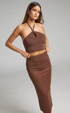 Showpo Kelcie V Neck Flutter Sleeves Crop Top And Thigh Split Maxi Skirt Two Piece Set In Wine