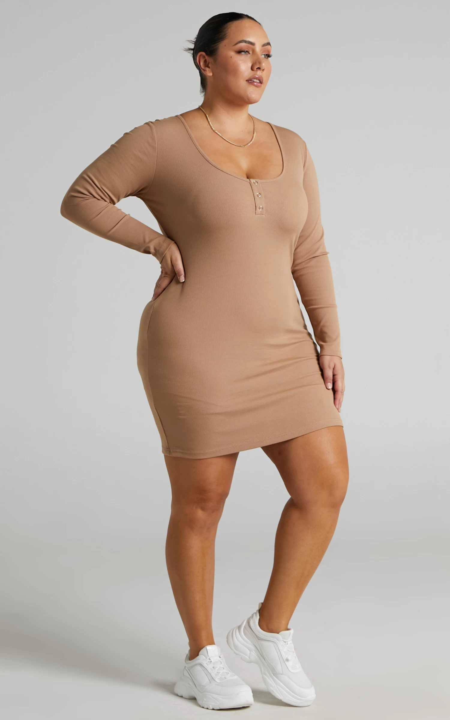 Whether you’re loungin’ around or headin’ out, make our Adricha Dress your OOTD! This henley mini dress features a scoop neckline with snap buttons on the front, long sleeves and a flattering bodycon fit. It fits like a dream and will have you looking like a dream, so make it a staple basic in your transeasonal wardrobe and you’ll have no regrets. Dress it up with heeled sandals and a mini handbag for a night out or down with chunky sneakers for a day out!