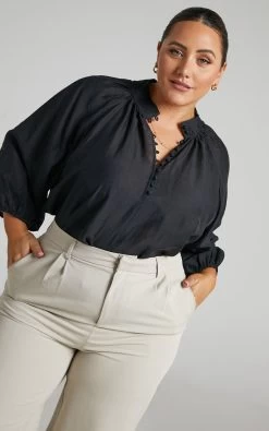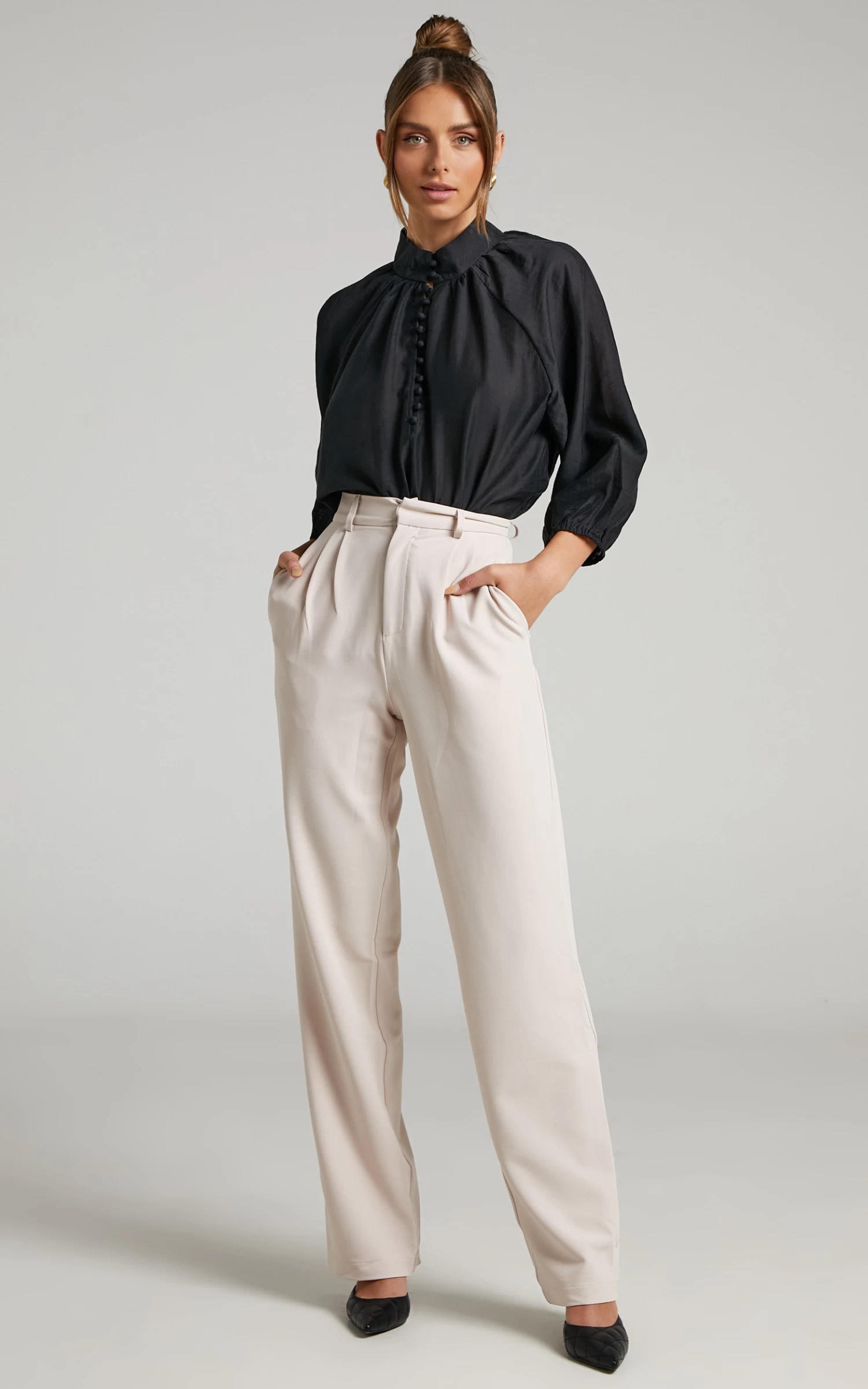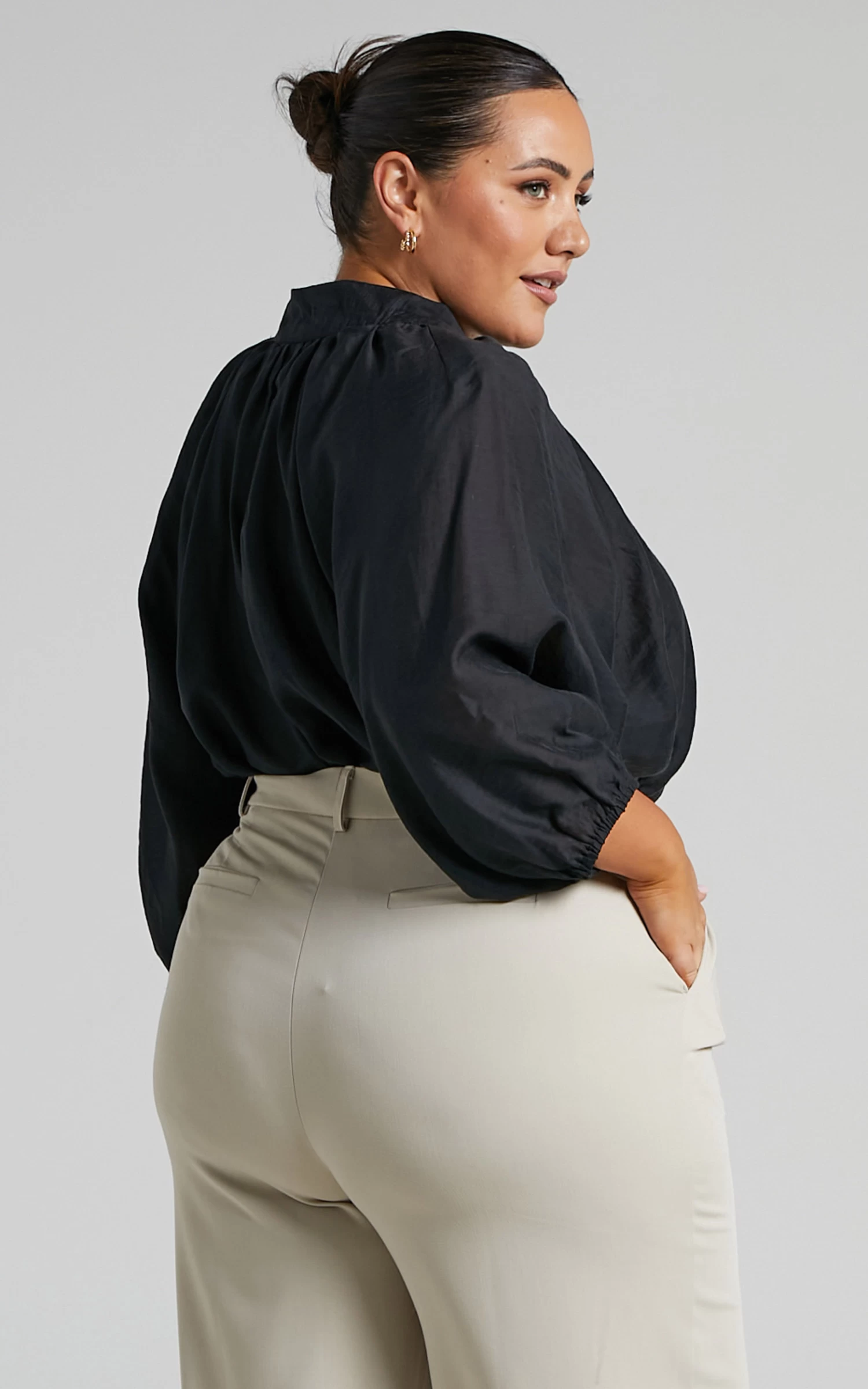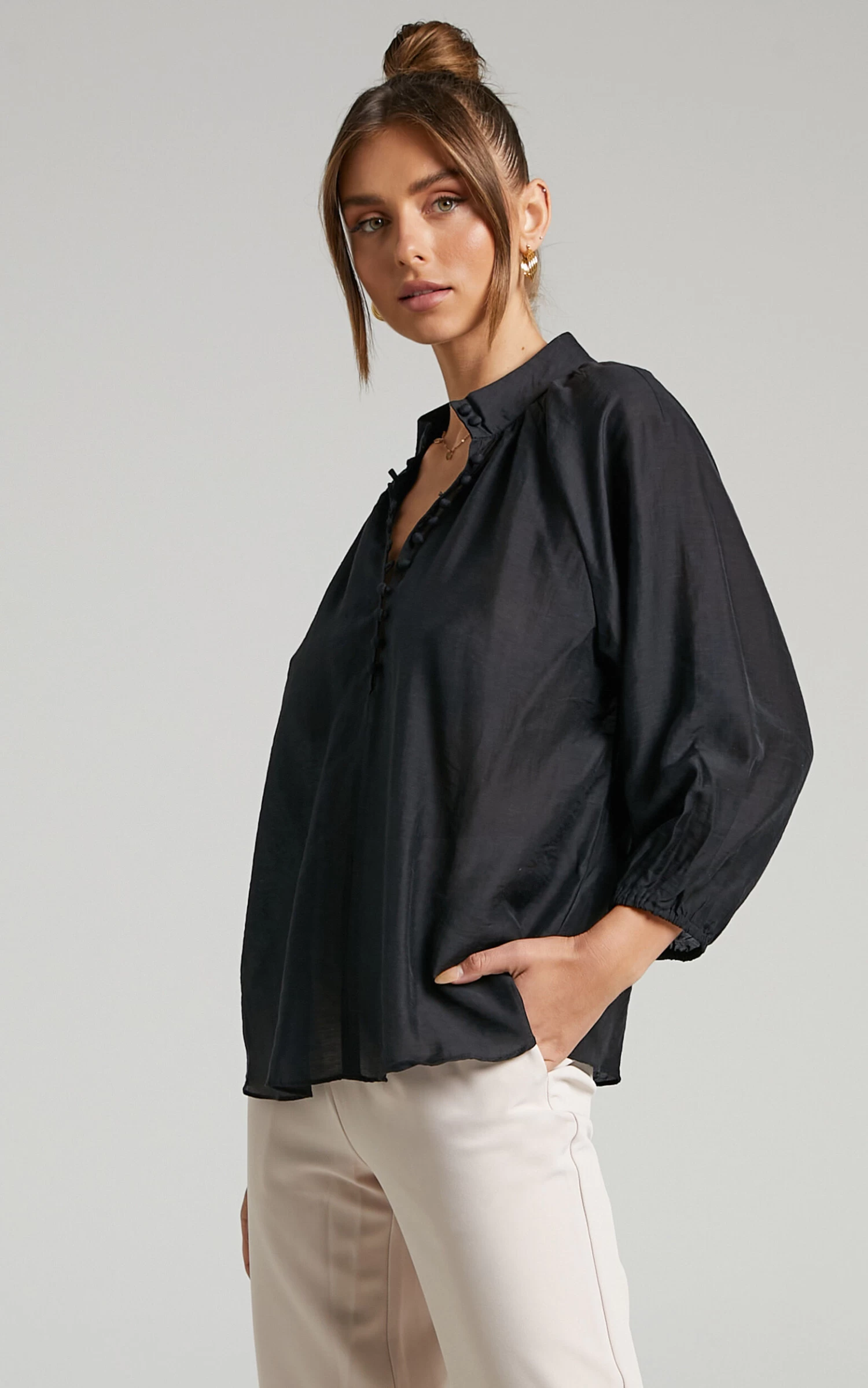 Keep the vibes chic and classy at work with our Aida Blouse! This pretty number features a high neckline, a button up front, 3/4 length sleeves and a relaxed fit. It’s such an easy breezy piece that’ll have you looking oh-so-stylish in the office. Wear it tucked into some high waist trousers or a skirt and style it with pumps, hoops and a handbag!