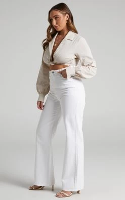 For day dates, long lunches and more, our Airen Blouse is a total winner! This chic and slightly risque crop top features a collared plunge neckline, knot front detail and long cuffed sleeves. It’s perfect for the warmer seasons and it can be dressed up or down for any occasion.Â