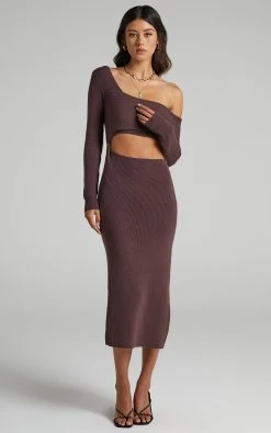 Stay warm and stylish in the Alabama Asymmetric Knit Midi Dress, featuring cut outs and a figure-skimming length. Show off your finest curves with its asymmetric foldover neckline and a tube-style midi skirt with a thigh high split on the side.