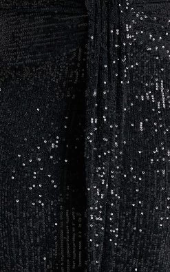 Stun your next entourage in the Amae Square Neck Drape Two Piece. It comprises a cropped cami and skirt both embellished in all-over sequins for a glamorous mood. The skirt sits at a high-rise waist with a concealed side zip and falls to a fluted maxi hem featuring a front split.
