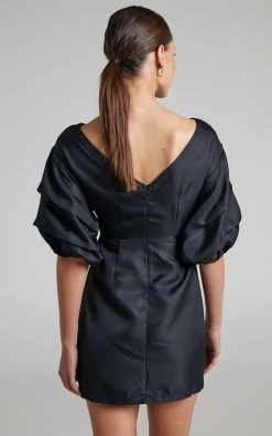 Show off a sexy sophistication in the Anastasija Dress! This stunning mini dress has a sculptural off-the-shoulder neckline, elbow-length puff sleeves and a fitted waist with darts at the skirt for a slim fit. It’s highly chic and perfect to wear for special events or occasions. Pop it on for date night with layered necklaces, hoops and some sleek heels!