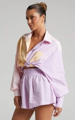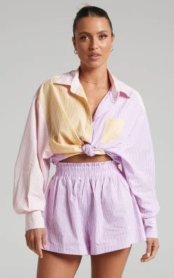 Light, bright and just right for sunny weather, our Autumn Shorts will be cool forever. Featuring a cinched elasticated waist, flattering mini length and subtle stripe detailing, they’re a dream paired with a cropped tank, oversized shirt and slides.