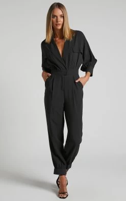 Relaxed dressing gets a chic update with our Ayelin Jumpsuit! This breezy all-in one piece has a deep V-neckline, notched collar, 3/4 sleeves with cuffs, fitted waist, faux pocket details and full-length tapered legs with cuffs. It’s the perfect low-effort, high-impact number to rock from day to night this season. Style it with chunky sandals for a casual weekend away or with heeled sandals for a dressier take!