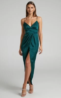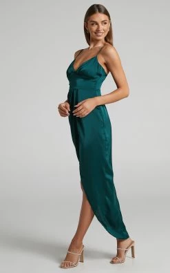 Be your best-dressed self in our Azrael Tulip Dress! This sleek and classy maxi will have everyone fall head over heels for you. Featuring a V-neckline, bust seam gathering detail, fitted waist panel and a high-low tulip skirt with pleat detail, this incredible dress is perfect for any special events and occasions coming up – think formal, parties, weddings and everything in between.Â