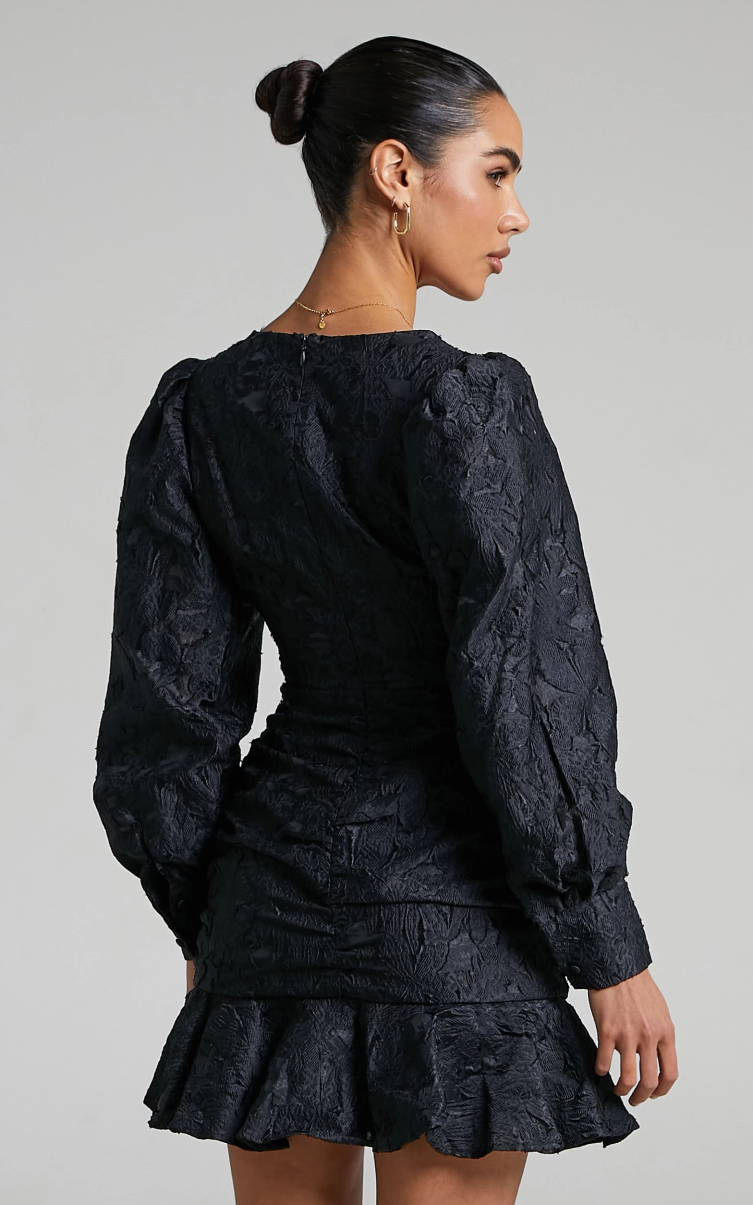 Bringing you sweet but chic realness is our Baxia Dress! This textured floral mini features a plunge neck, fitted waist, gathered detail on the skirt, long balloon sleeves and a ruffle hem. It’s the most flattering fem piece that is perfect for special events or occasions. Wear it to a party with heels, statement jewellery and a mini handbag for a look to remember!
