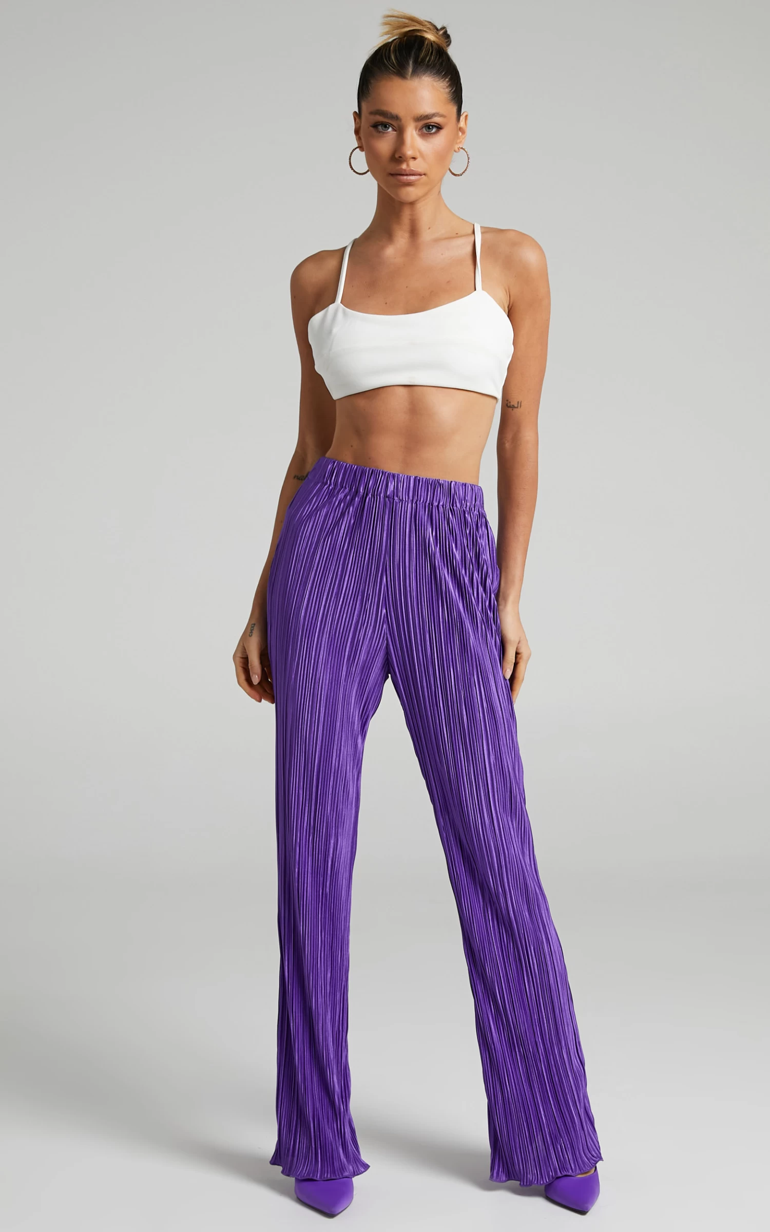 Team them with a cropped tee and platform sandals for a fun sunny-day look or jump on board the co-ord trend with the matching Beca Plisse Button Up Shirt in Purple!