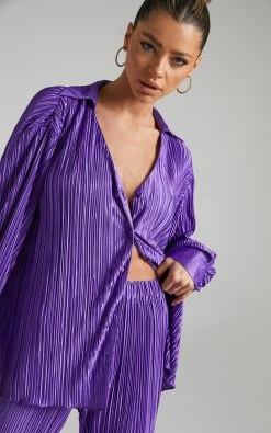 Wear this beauty with denim jeans for a casual look or go for a glamorous co-ord look with the matching Beca Plisse Flared Pants in Purple and high heels!