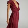 Simplicity is key with our Bellia Dress! This incredibly chic midi will have you serving looks from day to night with no fuss and no effort. Featuring a V-neckline, self-tie wrap front, short kimono sleeves and a high-low tulip hem, this classy piece is the perfect choice for those special events or occasions coming up. Keep it simple with minimal jewellery, heels and a mini top handle bag for a polished party look!