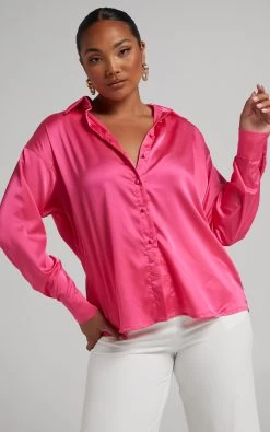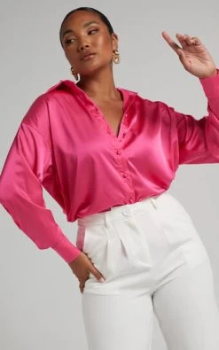 Show off an effortless glamour in the Blaze Oversized Relaxed Shirt! It has a luxe satin-look finish and is shaped to a button down front with a pointed collar and long cuffed sleeves. It’s a sleek piece that can be worn across seasons for any event or occasion.