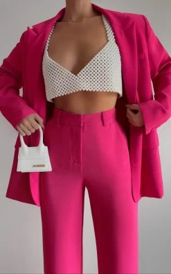 Team them with a crop top, strappy heels and elevated jewellery pieces for nights out or go co-ord with the incredible Michelle Oversized Plunge Neck Button Up Blazer in Pink!