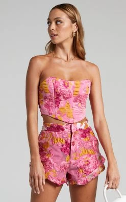 Pair it with the matching Brailey Bustier Top in Pink for a sexy and sleek finish or heighten its playful mood with the Brailey Puff Sleeve Crop Top and complete your look with heeled sandals and loose waves!