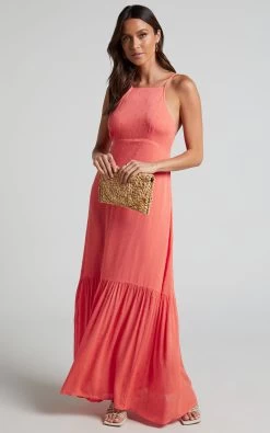 Bring a charming aesthetic to your day looks with the Cariele Tiered Maxi Dress! This gorgeous dotted number is cut with a high neck and slender shoulder straps. An empire silhouette is highlighted to show off a streamline effect before dropping to a gathered tiered hemline panel for a flourishing finish!