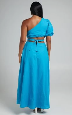 She’s femme, she’s fresh and we’re in love. Our Cedie Dress features an asymmetric neckline, one shoulder puff sleeve, tie back detail, cut outs at the waist and a thigh high split. This beauty is absolutely perfect for day parties, dates and everything in between. Style it with heeled sandals, statement hoops and add a mini top handle bag to round out the look!