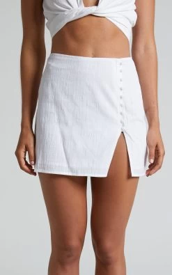 Give your summer skirt collection a pick-me-up with the Celinna Mini Skirt! This effortlessly chic piece has button detailing on the front, a small side split and a textured finish. It’s such a pretty and lightweight piece to wear to those upcoming day parties or casual dinners.