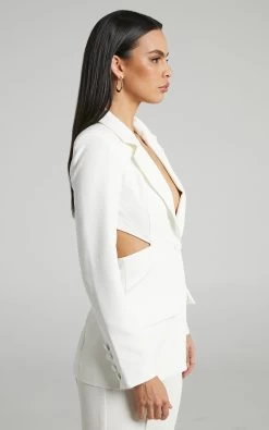 The Chona Blazer displays modern tailoring at its best! This chic and elevated piece highlights the illusion of an hourglass silhouette thanks to it’s side waist cut outs that extend to the back. It features a plunge neckline, notched collar, long sleeves and a single breasted design for added structure.Â