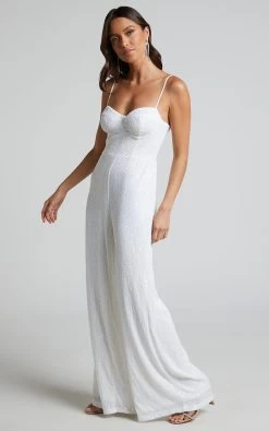 From AM to PM, the Claudilyn Jumpsuit is party perfection! Featuring a sweetheart neckline, bust cup seam detail, wide legs and an all-over sequin finish, just pair this incredible piece with your best heels for a show-stopping ensemble.