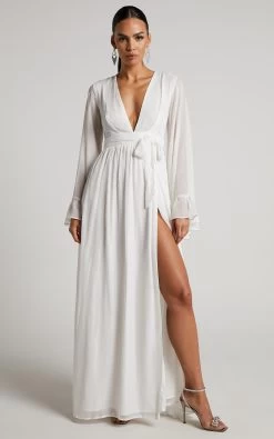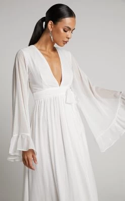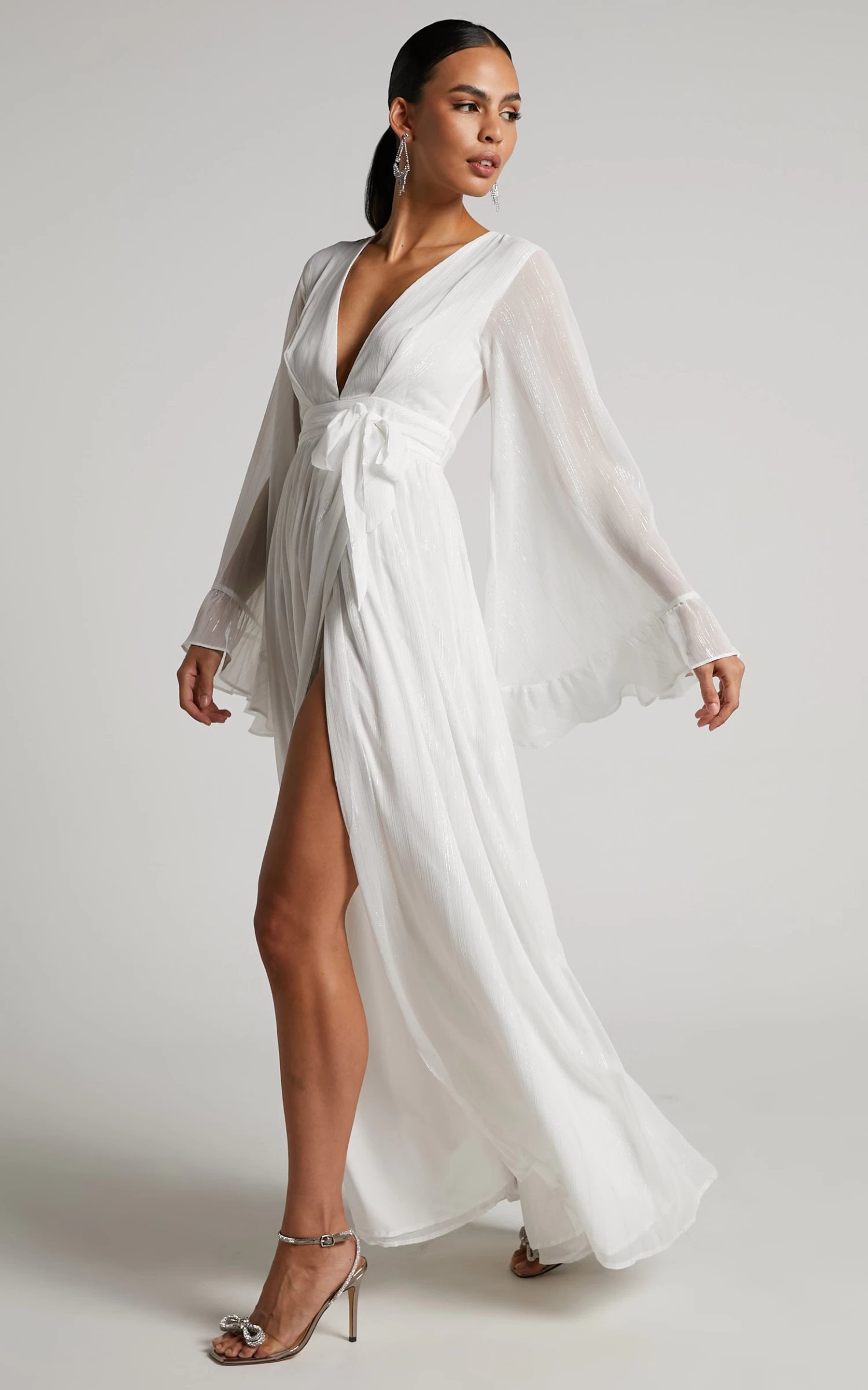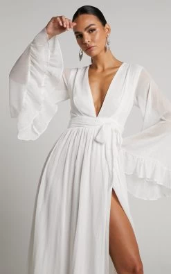 Our Dangerous Woman Dress is the hottest maxi you will ever find! Featuring a plunge neck, long sheer waterfall sleeves with ruffles and a thigh split –Â this piece is perfect to wear out to upcoming events and celebrations. Complete the look with some heels and a mini handbag for all eyes on you!