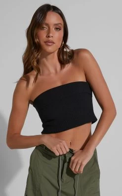 Perfect for any summer weekend activity, the Daylon Top is a must-have addition to your wardrobe! This strapless rib knit bandeau top in classic black is both versatile and stylish. Its straight cut and sleeveless design make it perfect for layering or wearing on its own as a crop top.