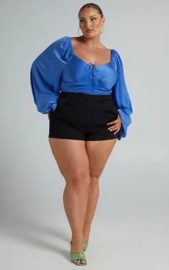 Showpo Delia Long Sleeve Blouse In Blue