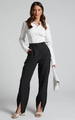 From desk to dinner, you’ll love our Denali Trousers! This sleek pair features a high rise waist, straight legs with split hems and side slip pockets. They’re versatile, timeless and perfect to wear to work, a party and everything in between.