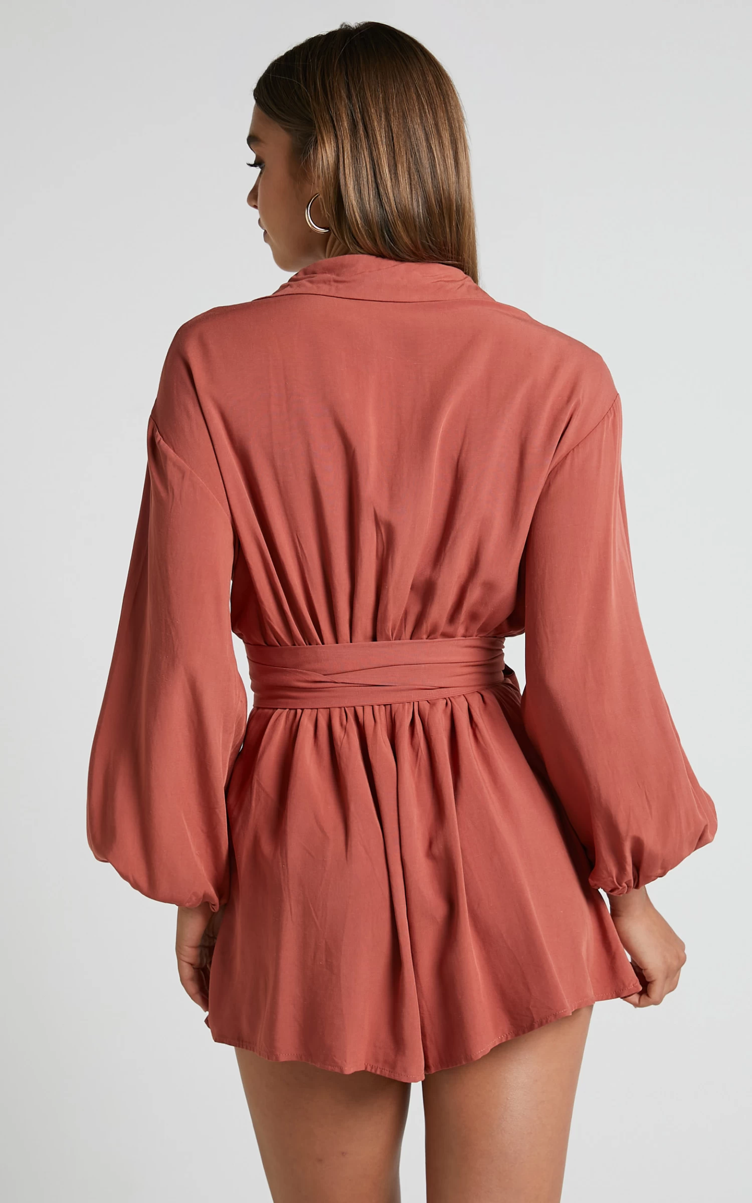 Attend those overdue lunches in style with our Devina Playsuit! This low effort, high impact number will be your saviour for those IDK what to wear days. It features a collared neckline, button up front, long balloon sleeves and a waist tie. It’s extremely flattering and easy to dress up or down. Wear it with strappy heels, minimal jewellery and a shoulder bag for a chic look!