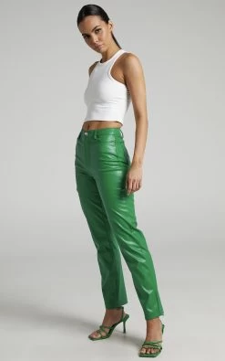 Take your going out looks to new heights with the Dilyenne Pants! These leatherette stunners will give you that enviable off-duty model look we love. They sport a standard straight leg fit with a high rise waist and will work from day to night for any occasion.