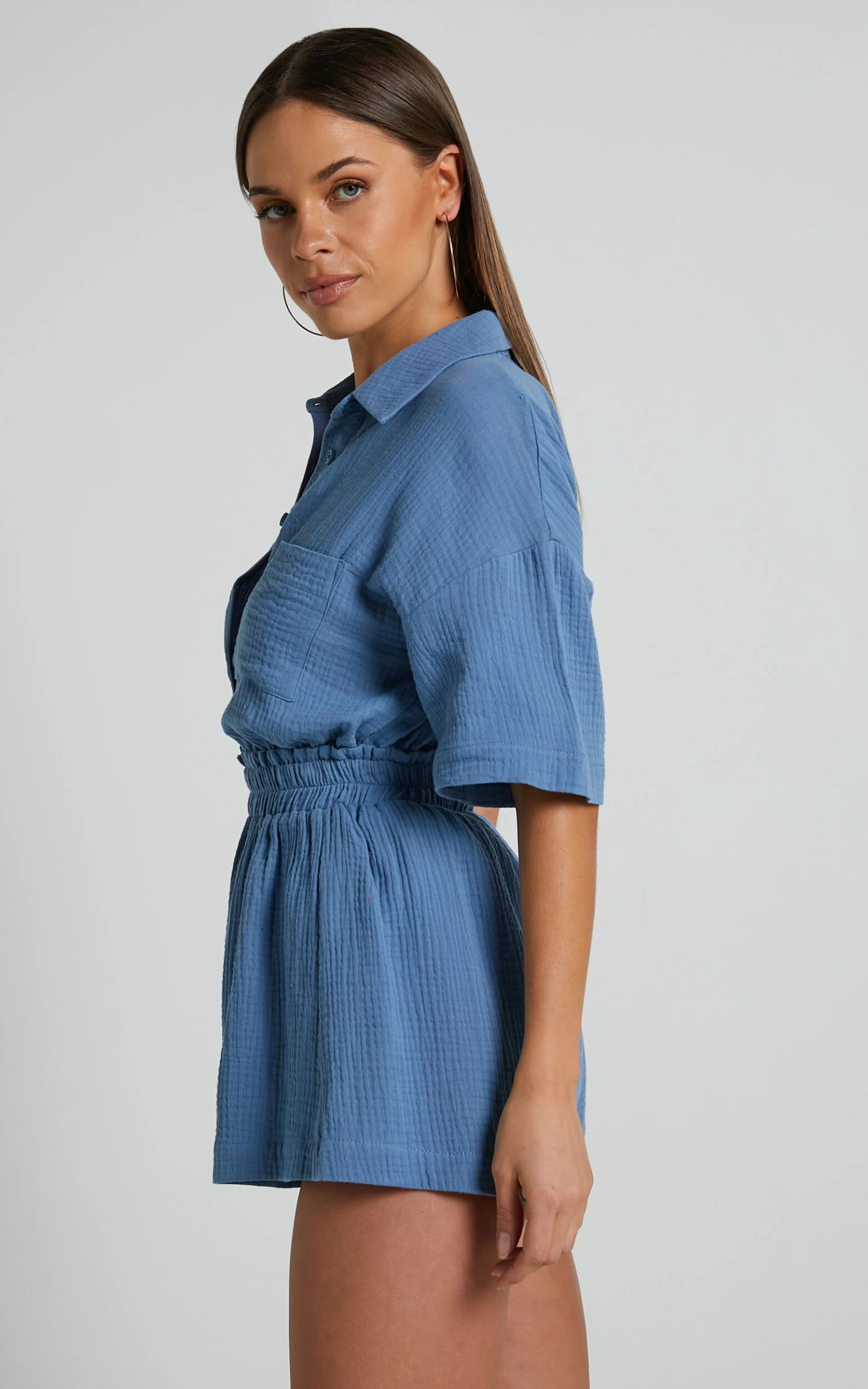 The azure blue hue is perfect for adding some color to your mid-summer wardrobe, while the tailored design ensures a flattering fit that will make you feel confident and chic. Pair them with a crop top or tank for an effortless summer look that’s sure to turn heads!