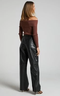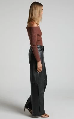 Showpo Edzelith – Mid Rise Faux Leather Relaxed Pant In Black