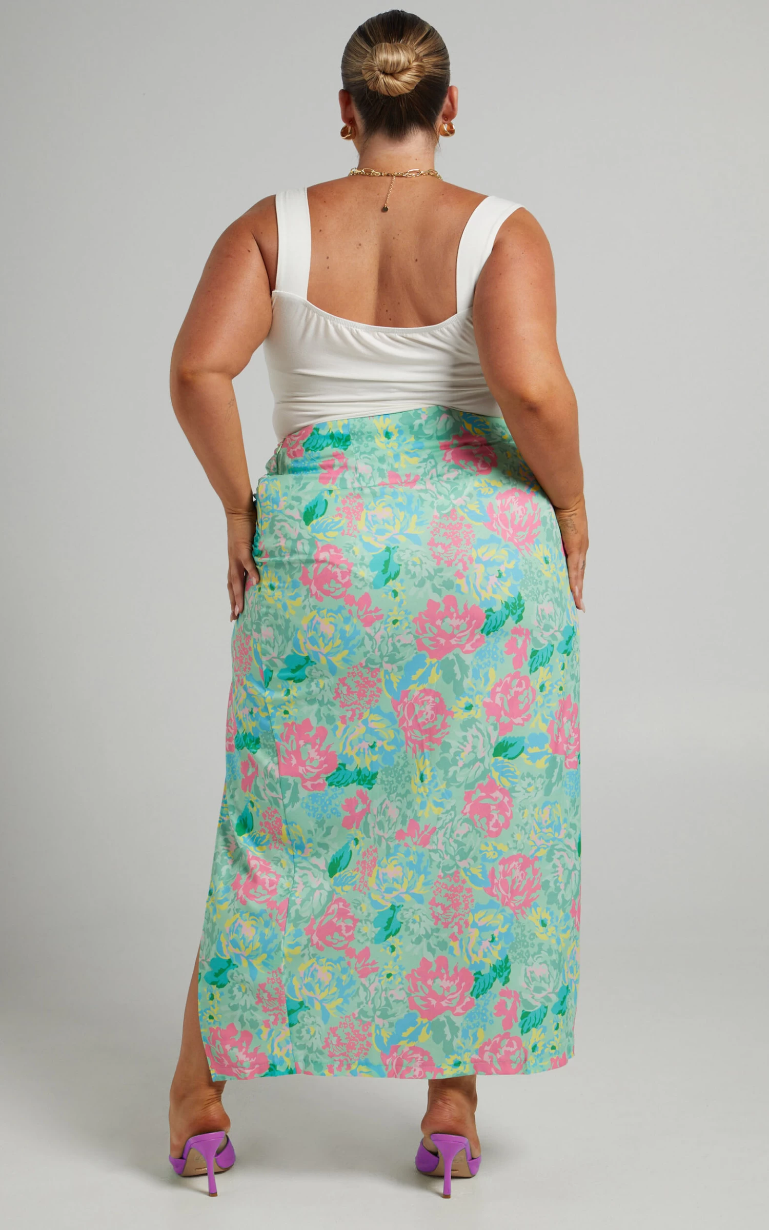 - High rise ruched maxi skirt