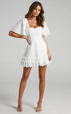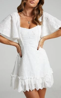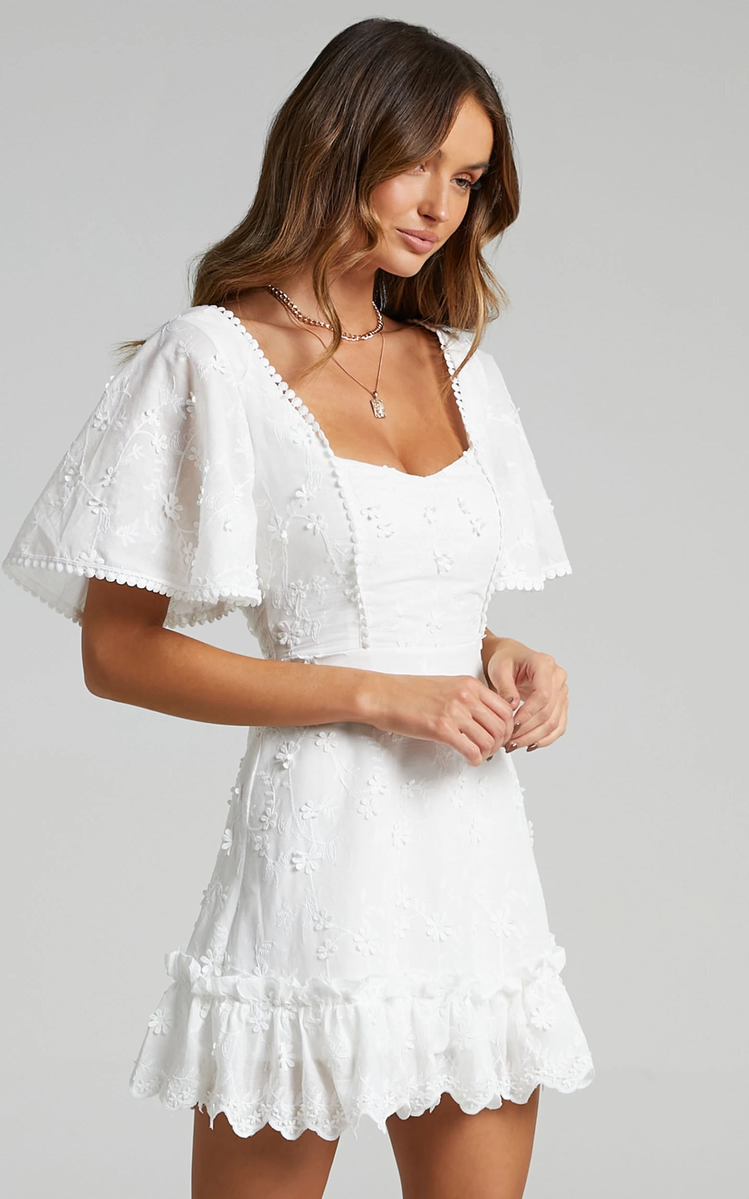 Feel stunning in our Fancy A Spritz Dress! Featuring embroidery details, flared angel sleeves and a square neckline with a slight sweetheart finish, this A-line mini dress is the perfect choice for that day party or special event coming up.
