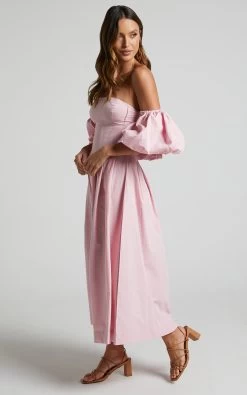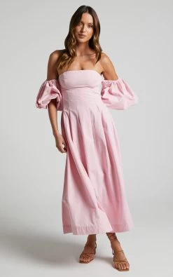 Get ready to make a statement in the Geloe Structured Off Shoulder Puff Midi Dress in Pink. This fit and flare dress is not your average party day pick – it’s bold, unique, and sure to turn heads. The off the shoulder design adds a flirty touch while the short sleeves keep you comfortable all night long.