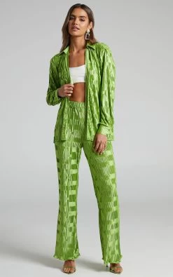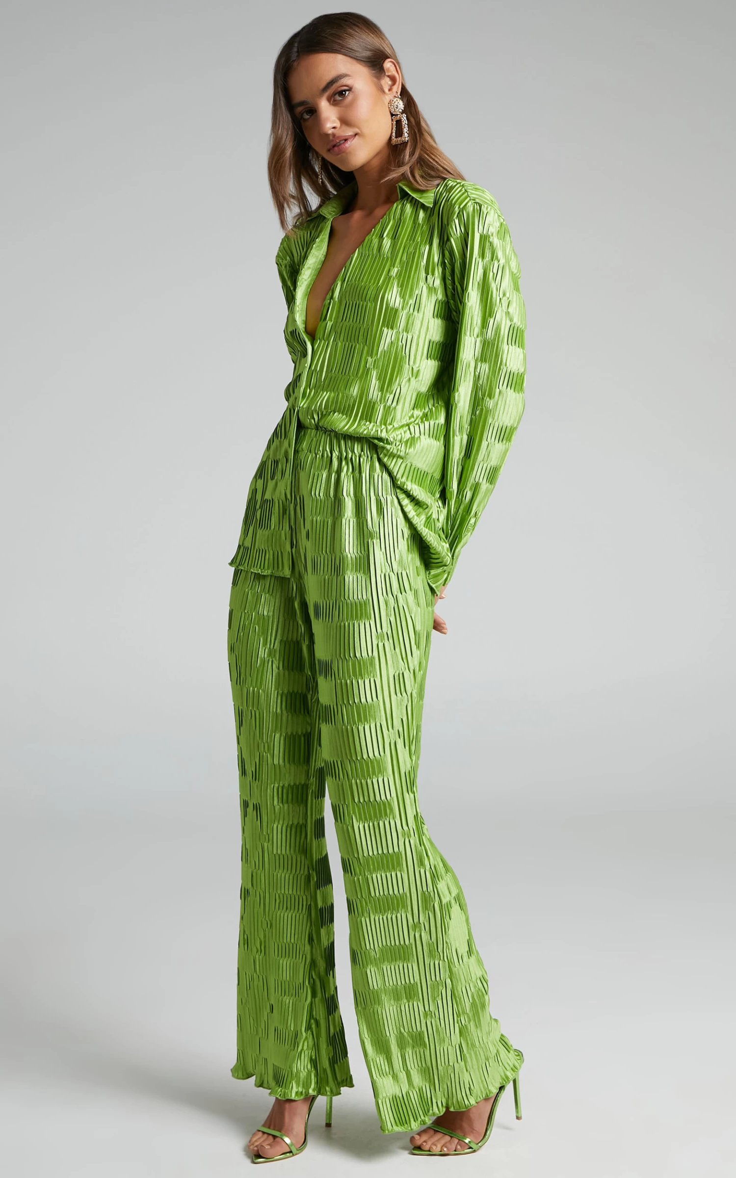 Go all over geo by teaming it with the matching Greta Geometric Plisse Button Up Shirt in Green and mules for a chic polished look or go casual by unbuttoning the shirt, popping on a bralette and swapping the mules out for chunky sandals!