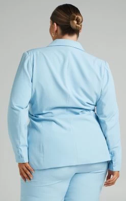 Wear it with a mini dress and boots for a day to night out or with the matching Hermie Cropped Tailored Pants in Light Blue, pumps and a handbag for a refined work look!