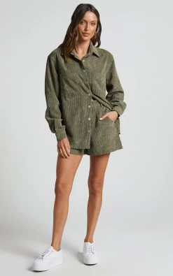 Get ready to elevate your casual wardrobe with the Hillevi Corduroy Shacket in Olive! This playful and flirty green shacket is perfect for those days when you want to dress up but still keep it comfortable. Made from high-quality corduroy material, this standard fit jacket features a long sleeve design that will keep you warm and stylish all season long.