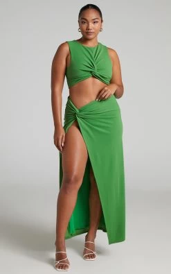 Introducing: the Jamiel Twist Front Crop Top and Maxi Skirt Two Piece Set – your newest summertime MVP! These mouthwatering co-ords feature twist knot accents in front and a high split skirt that does wonders for flaunting your best assets! Take them with you on your next beach trip, or pump up the heat on your Friday date night with this daring get-up. Complete the look with a pair of dangling earrings to give it a luxe spin!