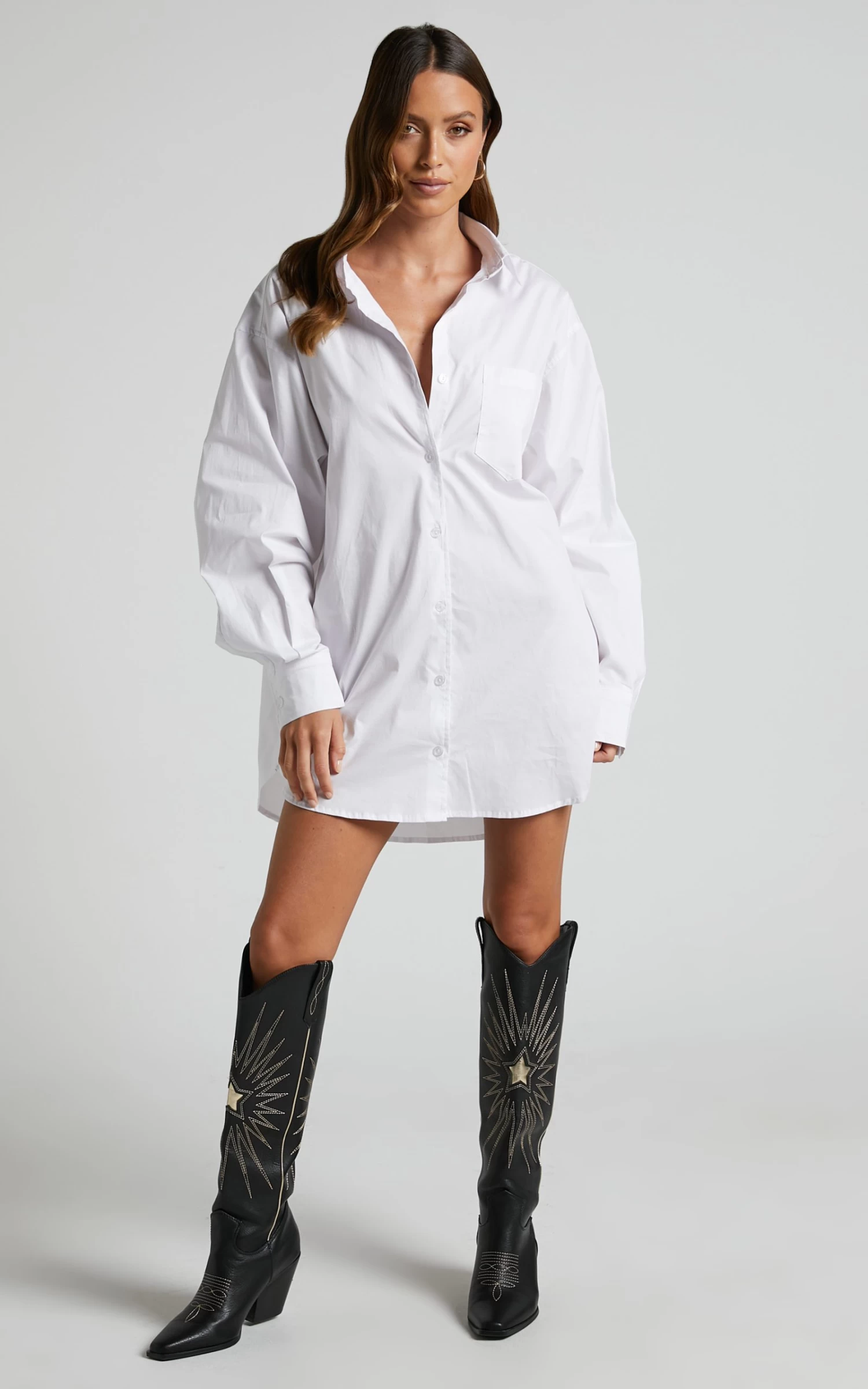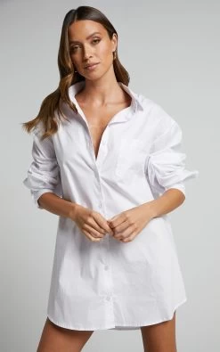 Feel like a major babe in the Janaya Shirt Dress! This simple but sexy mini shirt dress features a classic button-up design and long sleeves with a slit at the cuff for extra comfort. It looks chic worn as a dress or thrown over jeans and other separates for casual occasions.