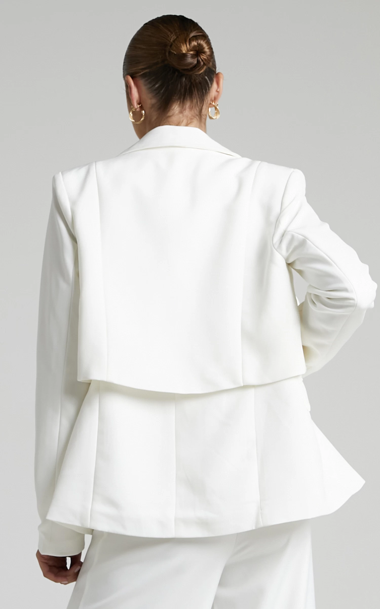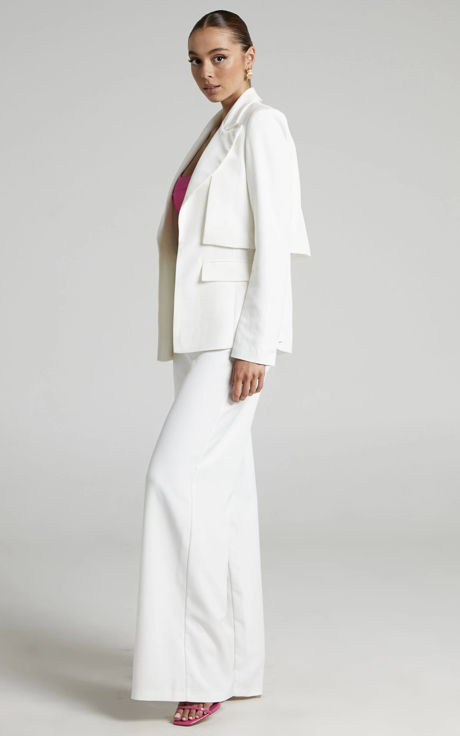Combine it with the coordinating Jaxine Tailored Wide Leg Trousers in White for a contemporary take on a classic ensemble.