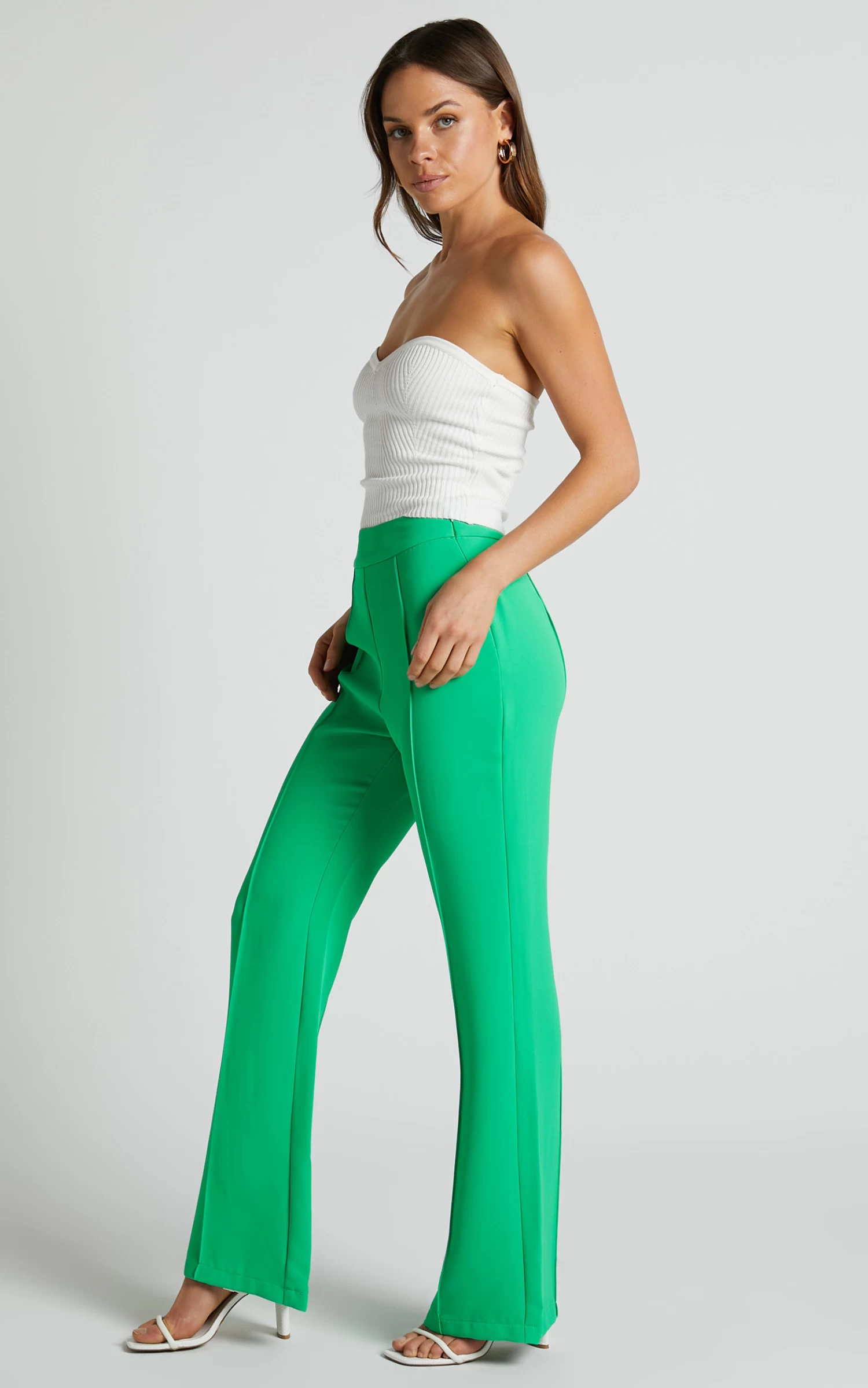 Introducing our super sleek Jessa Pants! These babies have a figure-hugging fit with a high waist on top and a cool flared leg on bottom – whether you want to jazz up your office ‘fits or party the night away, they’ll be perfect for the occasion.