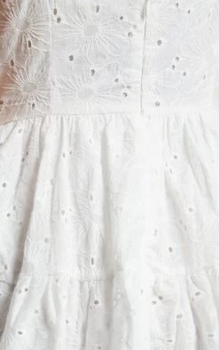 Get ready to turn heads in our Jovanie Corset Mini Dress in White! This stunning fit and flare dress is perfect for any party or festival occasion, with its playful mini length and sleeveless design. Made from soft cotton, this dress will keep you comfortable all day (or night) long. The scoop neckline adds a flirty touch while the corset detailing cinches in your waist for a flattering silhouette.