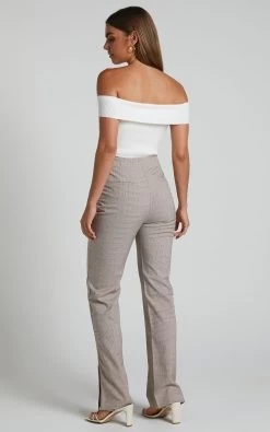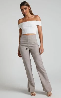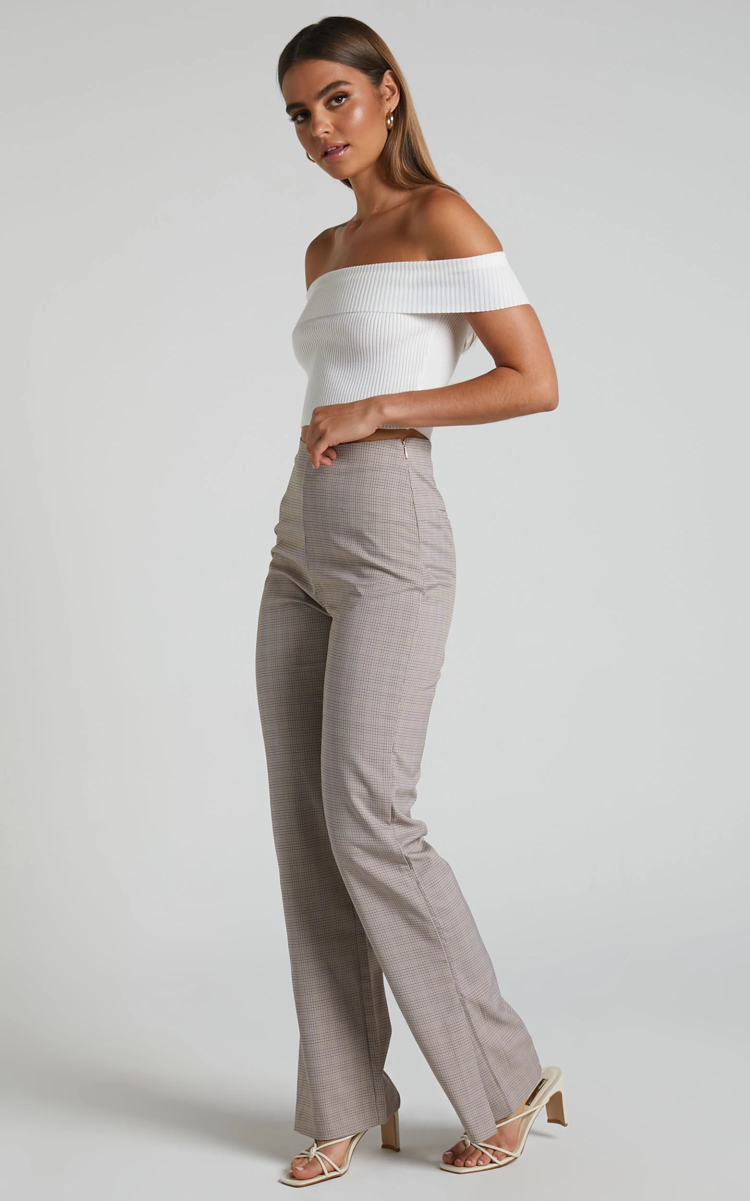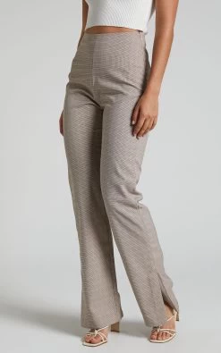 Showpo Khizza – High Waisted Side Split Pant In Brown Pink Check