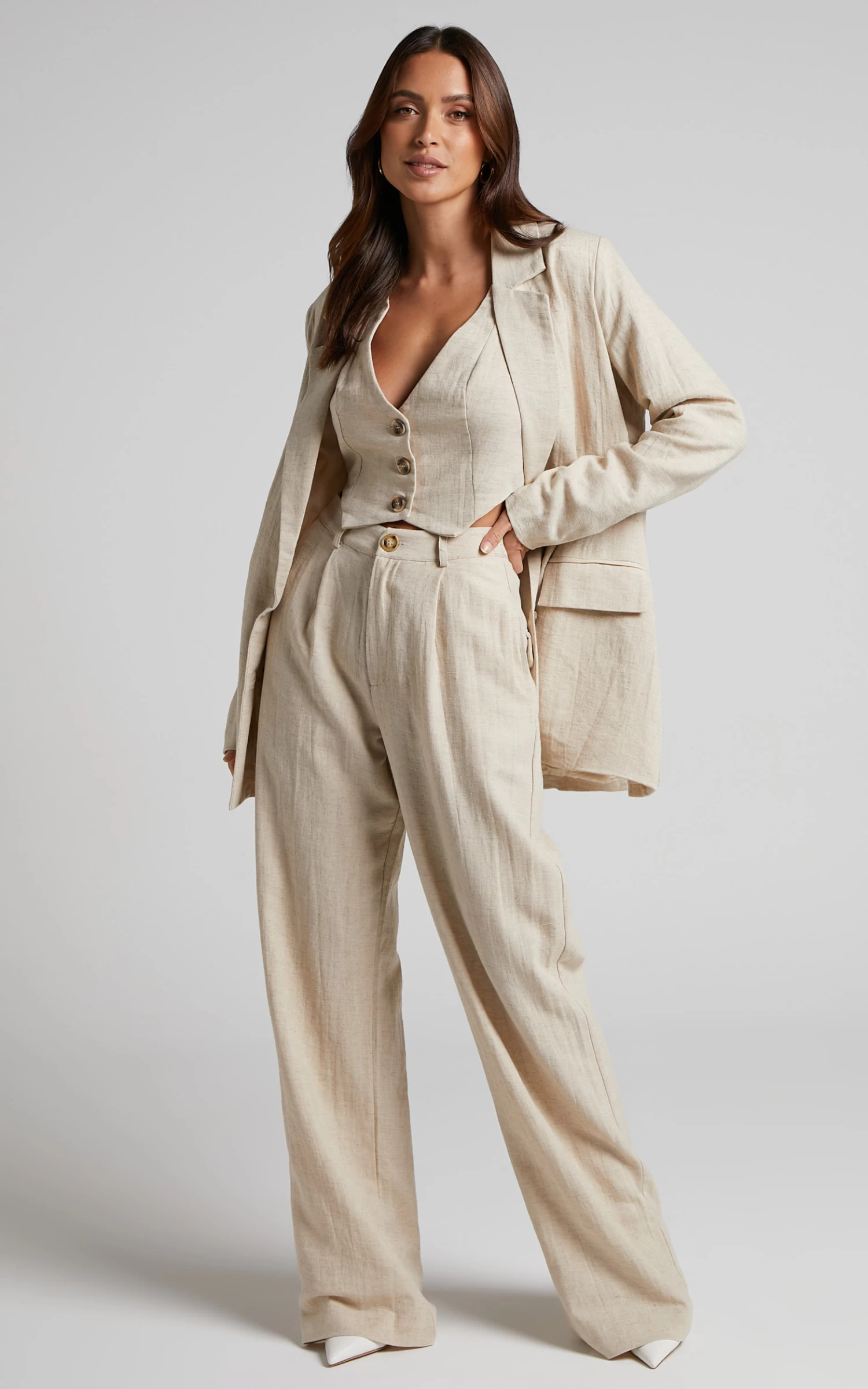 Up your summer style with none other than our Larissa Blazer! This easy, breezy and versatile blazer is a must-have this season. It features a V-neckline, notched collar, long sleeves, slits at the back on each side, flap pockets on the front and a relaxed fit. It’s perfect for day or night, and can be paired with almost anything you can think of.