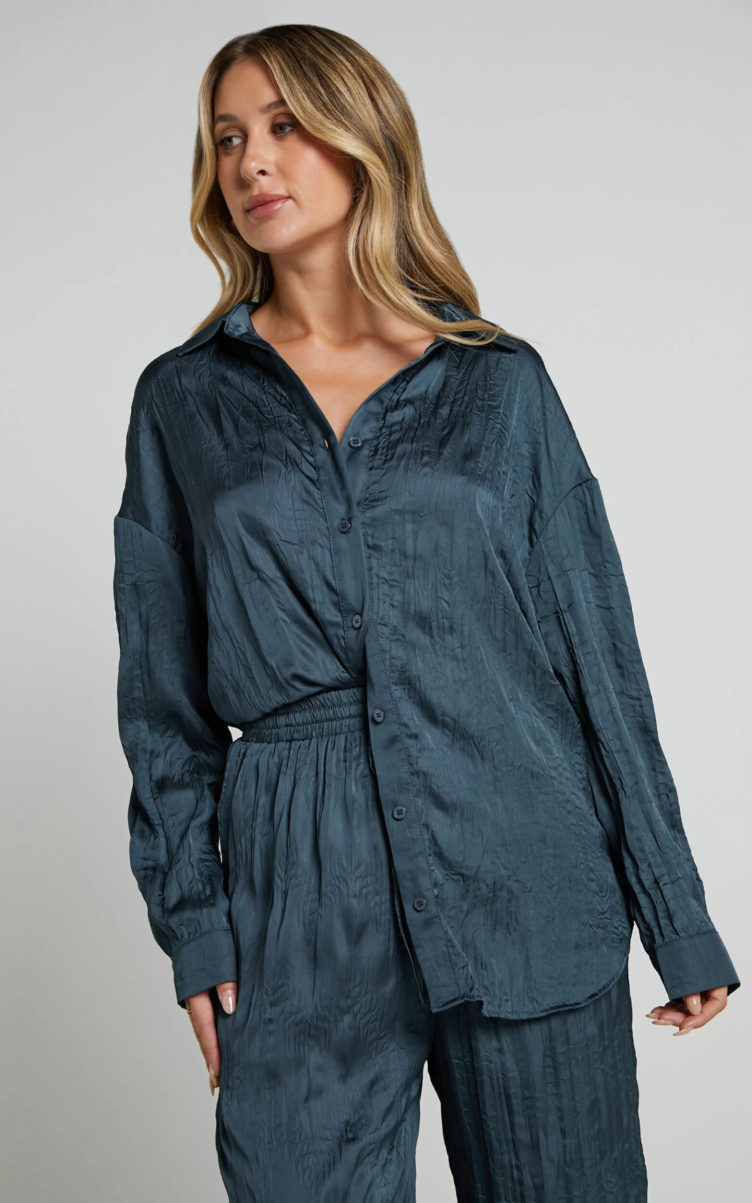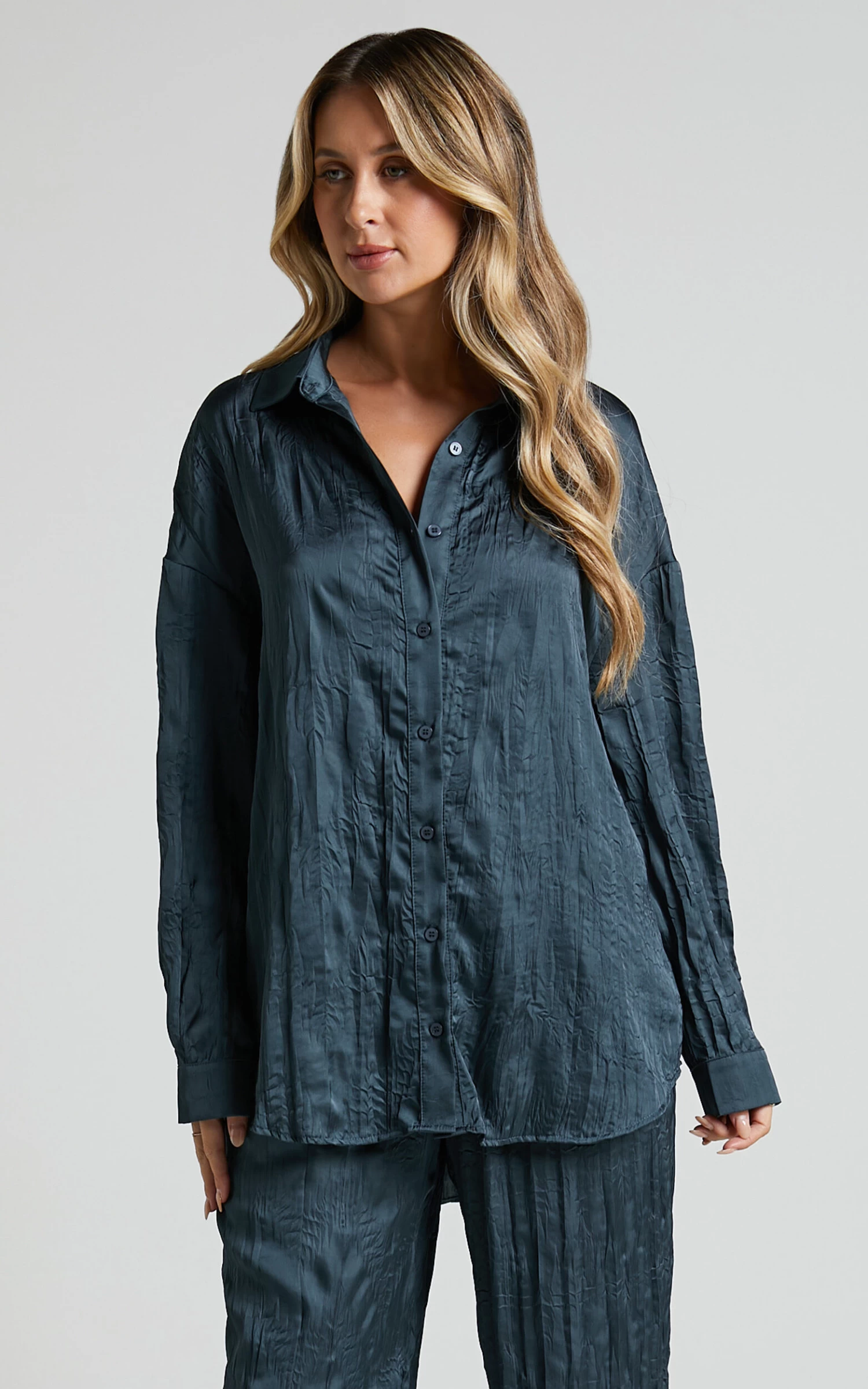 Get ready to fall in love with the Lazzy Top – Long Sleeve Crinkle Shirt in Petrol! This stunning blue top is perfect for adding a pop of color to your autumn wardrobe. With its casual yet trendy style, it’s the ideal choice for any occasion that calls for a touch of glamour.