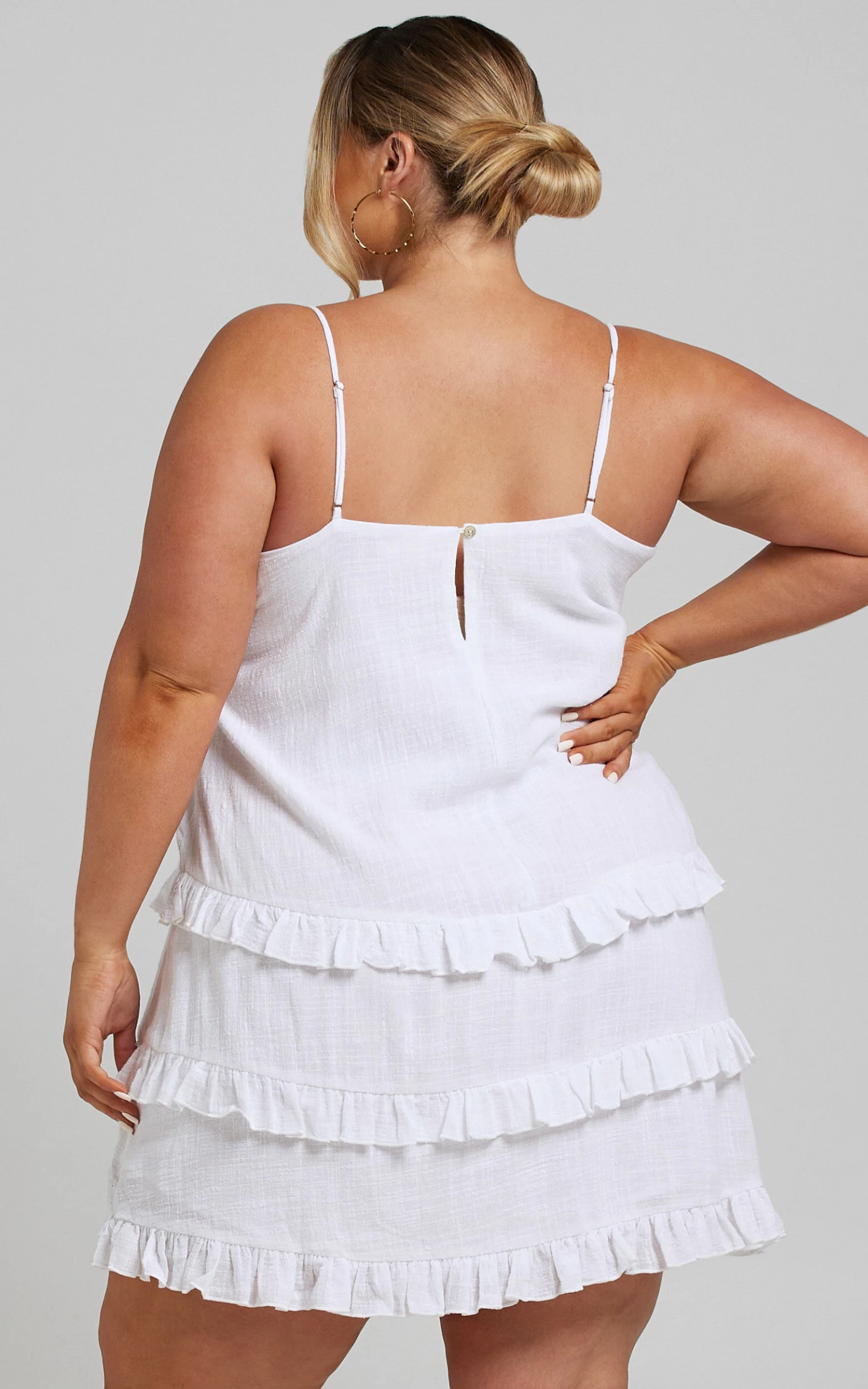 - Three tiers with ruffle trims on skirt
