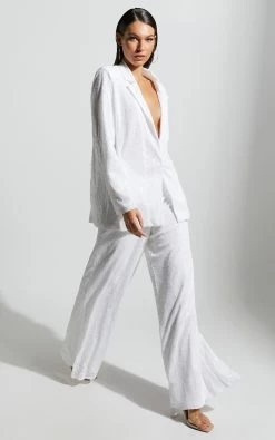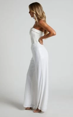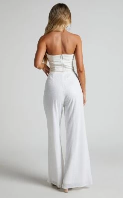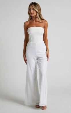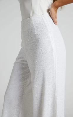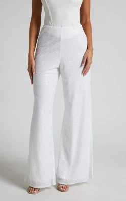 Showpo Looma Sequin – High Waisted Wide Leg Pants In White