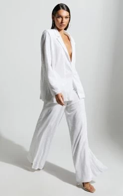 Showpo Looma Sequin – High Waisted Wide Leg Pants In White