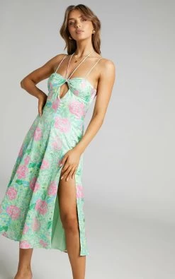 - Summer printed floral midi dress