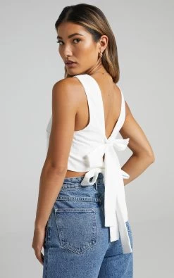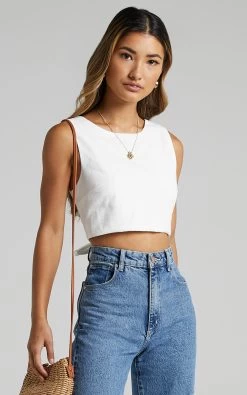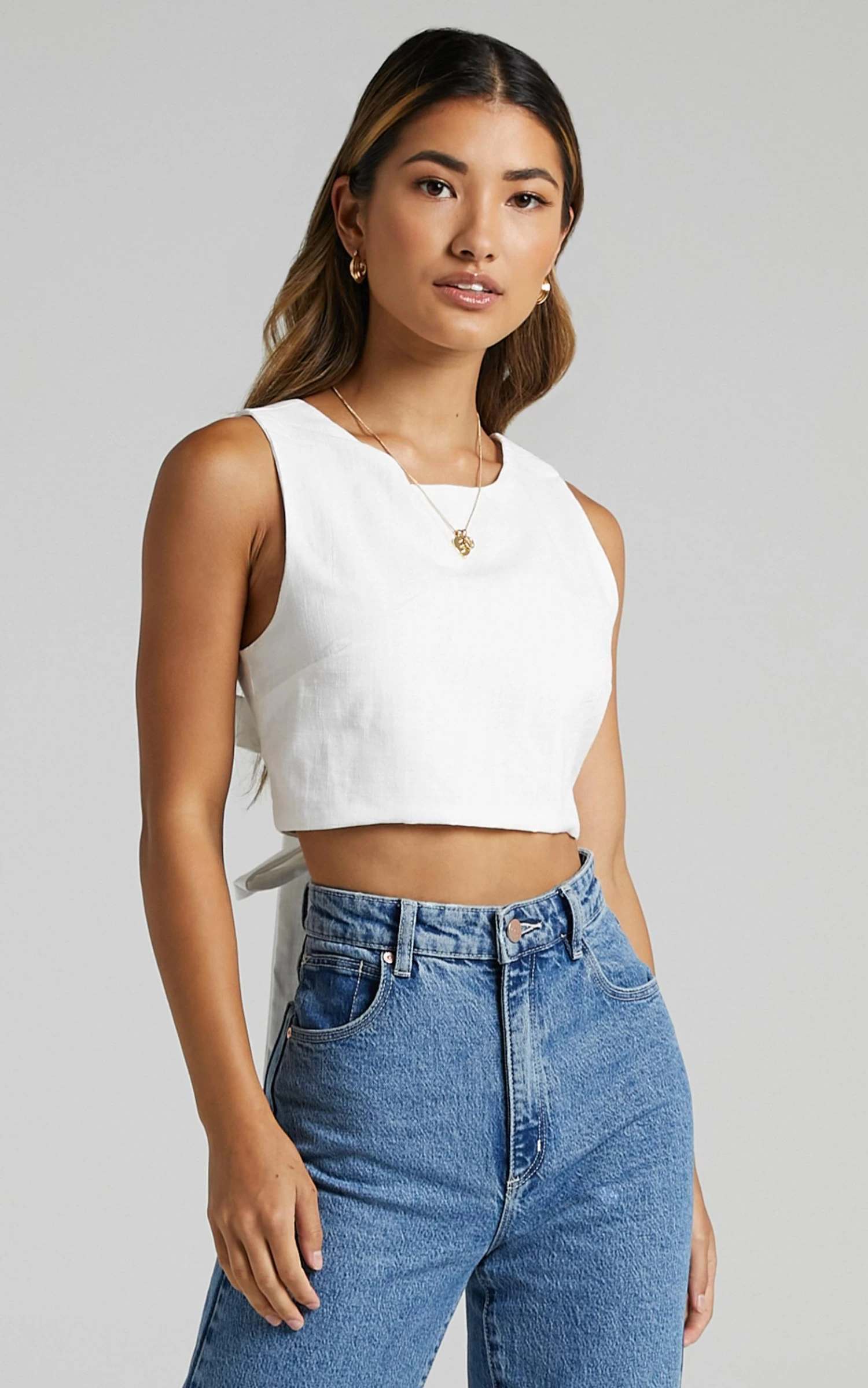 Make our Loxley Top a summer favourite! This sleeveless number is cropped at a flattering length and it features a round neckline, and a scoop back with double tie detail. It’s such a simple but chic piece that can be dressed up or down. Wear it out to lunch with high waist denim jeans, heeled sandals and a mini handbag to match!