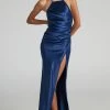 - One-shoulder asymmetric neckline